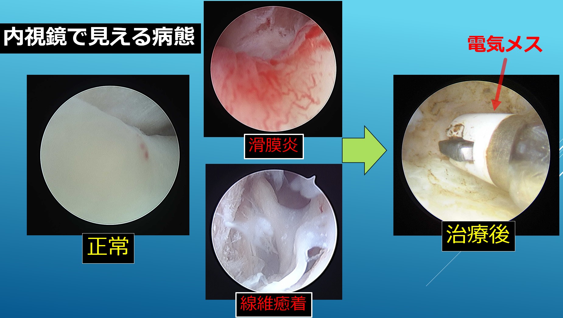 顎関節内に生じた関節の膜(滑膜)の炎症や長期間関節を動かさないことによる関膜の癒着に対して行われる低侵襲手術です。