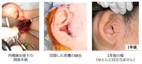顎関節開放手術は、皮膚を切開し、癒着した組織の剥離や滑膜の処理を行う顎関節開放剥離受動術や癒着した関節円板を切除する手術、骨変形が著しい場合は骨の整形を行う手術などがあります。